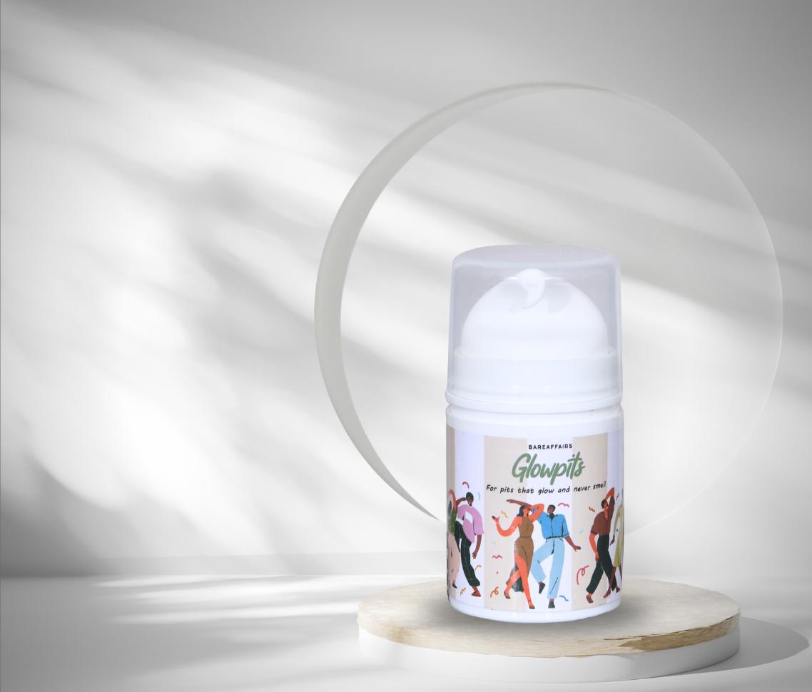At BareAffairs, we combine clean science with gentle care. GlowPits is formulated to brighten dark underarms, smooth uneven texture, control sweat and odor, and keep you confidently fresh — naturally and safely.